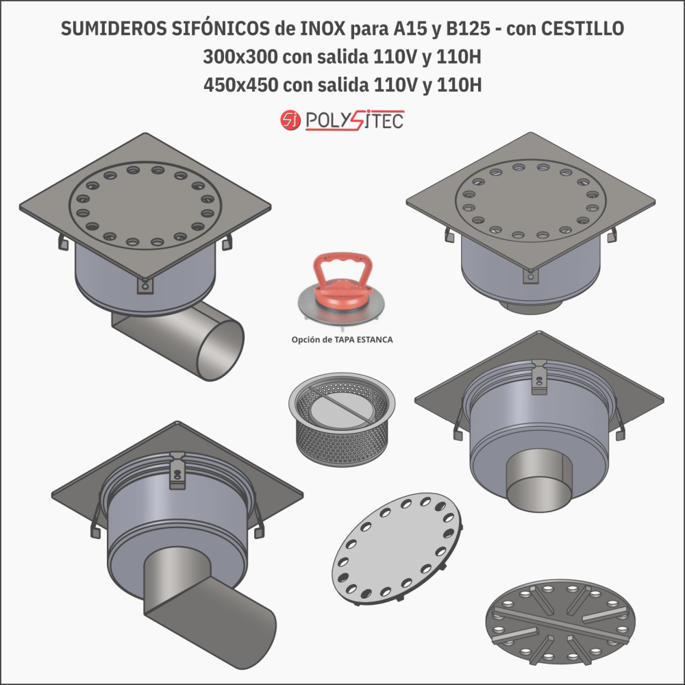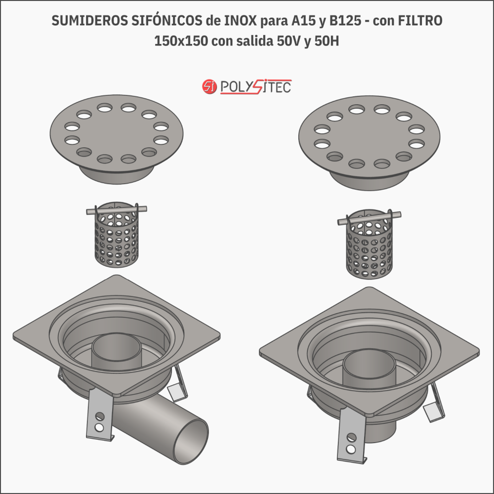 Polysitec® Siphonic drains made of stainless steel, for civil, domestic and semi-industrial use.