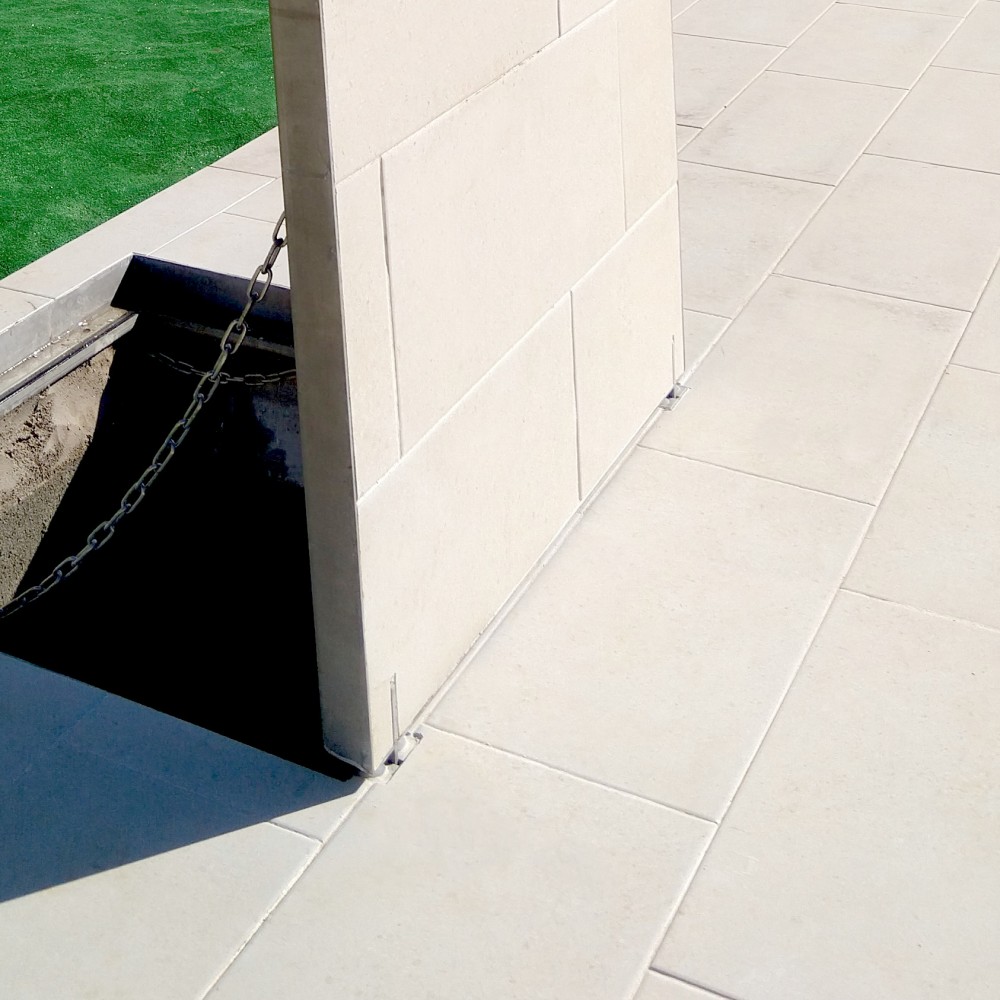 - The frame must be perfectly formed perimetrically with NON lightened concrete, the frame can be formed first and then the tray, always coupled and respecting the hardening times. Fill the exterior box caps with concrete. The skirt of the frame can be fixed with stainless steel screws/rods and chemical anchors, filling the gap between the skirt and the walls of the slab with mortar or similar.