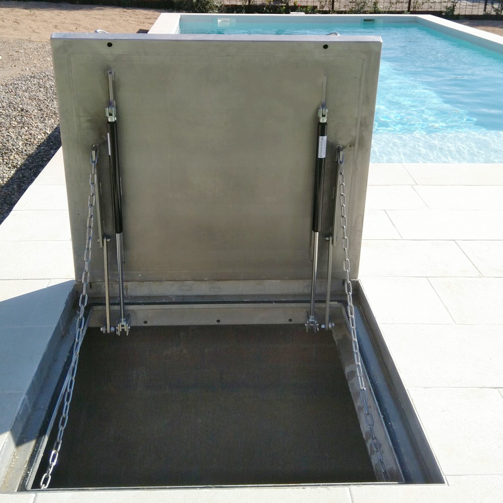 Polysitec® and its surroundings can bring you a wide selection of materials for the construction and equipment of swimming pools made of stainless steel AISI 316L: Drains, gratings, channels, Slotdrain, extendable vertical ladders with anti-slip steps. Assisted watertight hinged fillable covers, for form with the around pavement, providing aesthetics and functionality; For access to rooms of in-ground treatment plants and underground pool box, they minimize the noise of the filtration systems. With gas pistons and EPDM O-ring to ensure tightness. Customized and certified solutions !